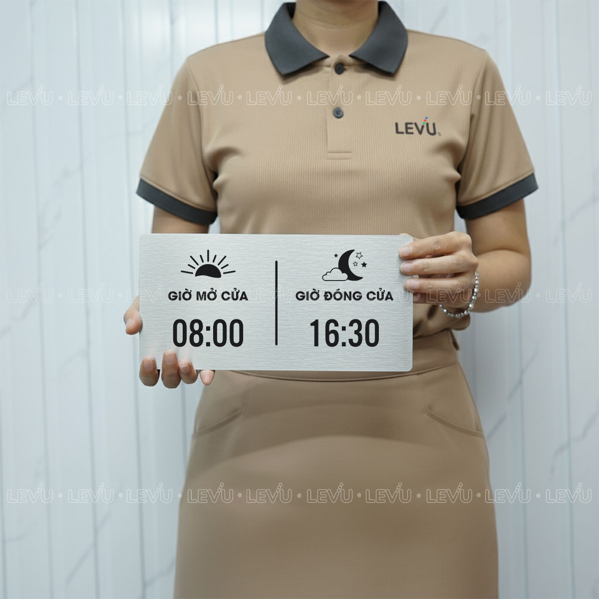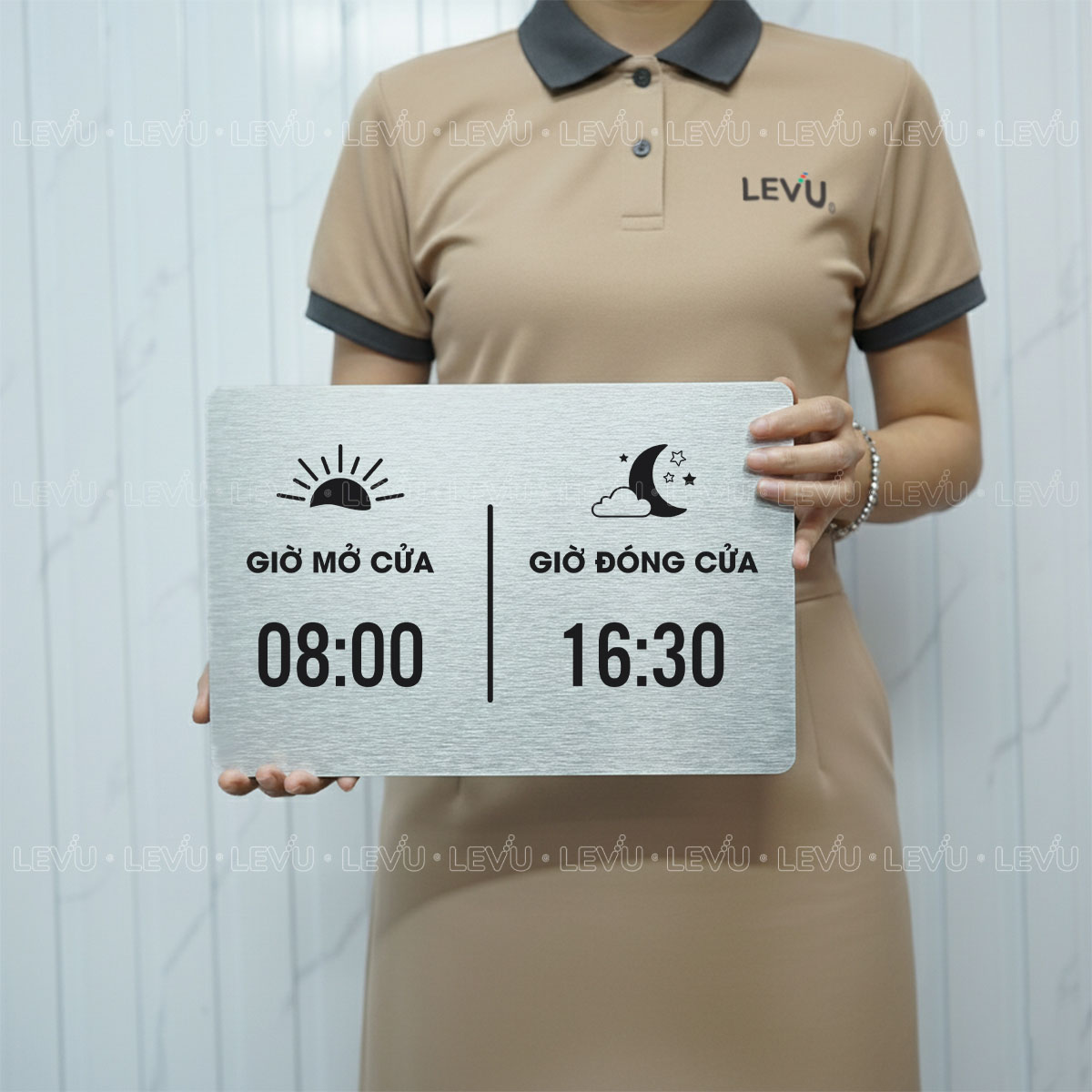 Bạn đã bao giờ cảm thấy tờ giấy ghi giờ mở cửa dán tạm bợ đang làm giảm đi sự chuyên nghiệp của cửa hàng mình? Hay khách hàng thường xuyên bối rối vì không biết chính xác thời gian hoạt động? Một không gian kinh doanh được chăm chút đến từng chi tiết nhỏ sẽ tạo dựng niềm tin và ấn tượng tốt đẹp ngay từ cái nhìn đầu tiên. Bảng hiệu giờ mở cửa và giờ đóng cửa LEVU BG102 ra đời để giải quyết vấn đề này, mang đến một diện mạo chỉn chu và đáng tin cậy cho mặt tiền của bạn.