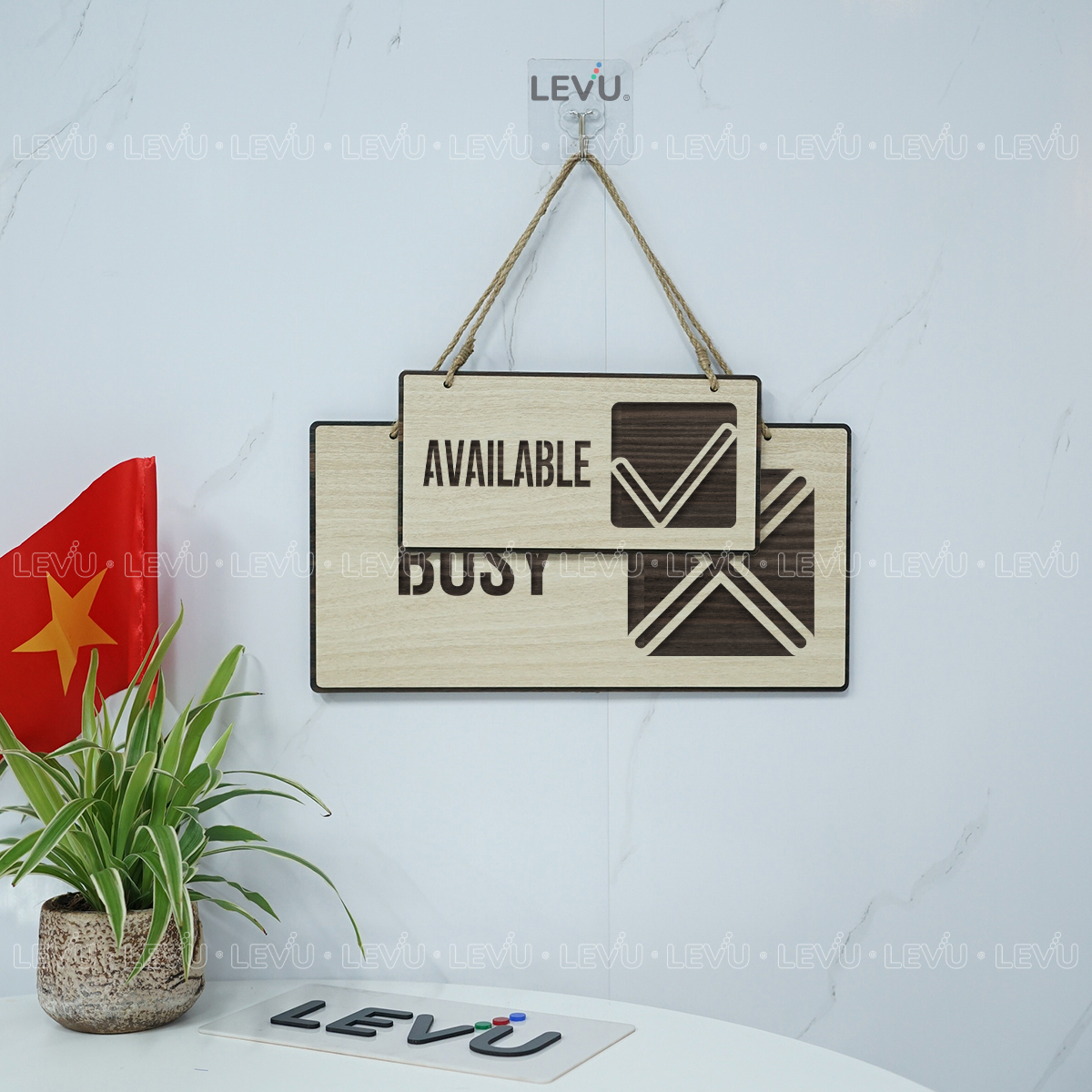 Được thiết kế với hai mặt tiện dụng, sản phẩm từ thương hiệu LEVU không chỉ là một công cụ thông báo mà còn là một vật phẩm trang trí đầy phong cách. Chỉ cần một thao tác lật bảng đơn giản, bạn đã có thể dễ dàng truyền đi thông điệp “Bận” hay “Rảnh” mà không cần dùng lời nói.