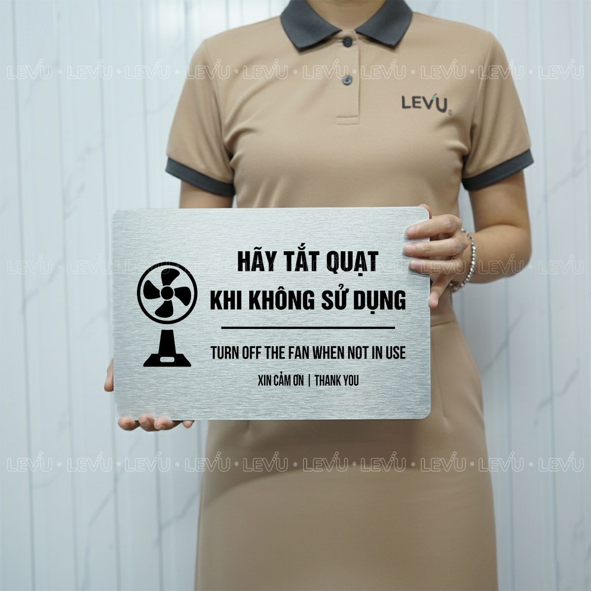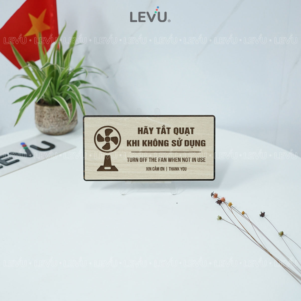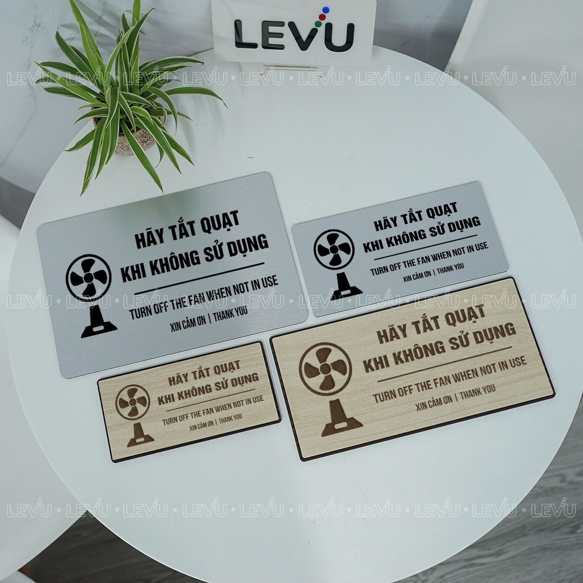 Bảng nhắc nhở hãy tắt quạt khi không sử dụng LEVU BG107 là giải pháp đơn giản nhưng hiệu quả để xây dựng thói quen tiết kiệm điện và nâng cao ý thức chung. Sản phẩm được sản xuất trực tiếp bởi LEVU Shop với hai tùy chọn chất liệu là gỗ MDF và nhôm Alu, phù hợp cho văn phòng, cửa hàng, trường học và nhà ở.