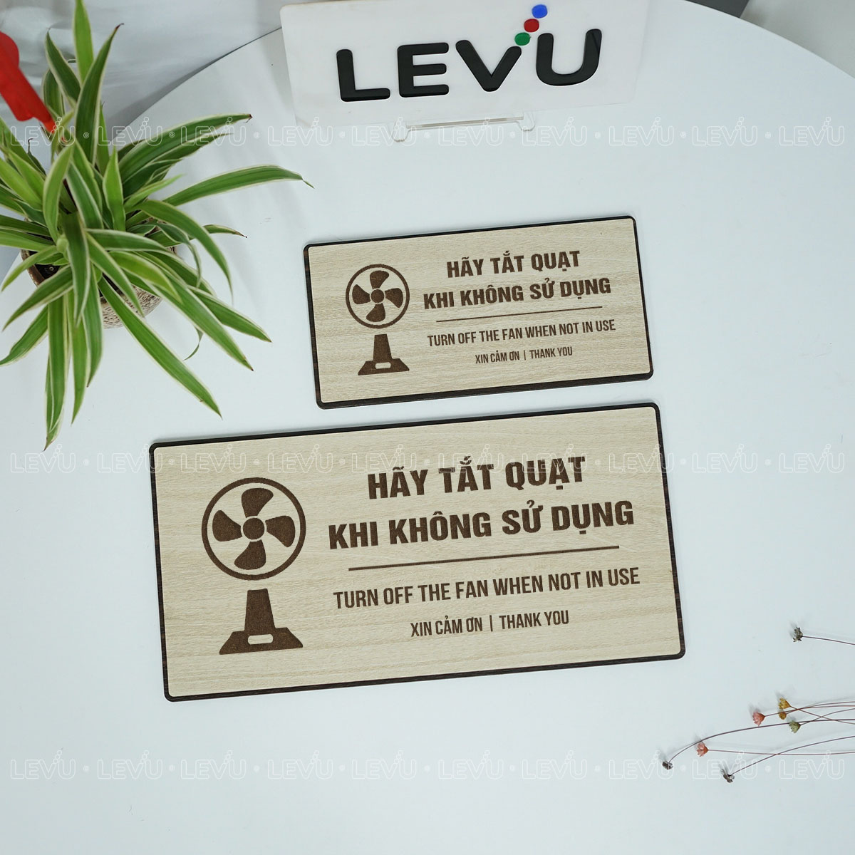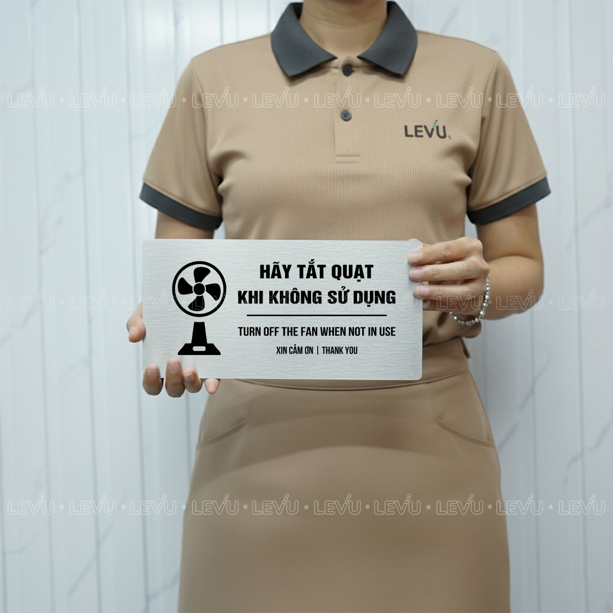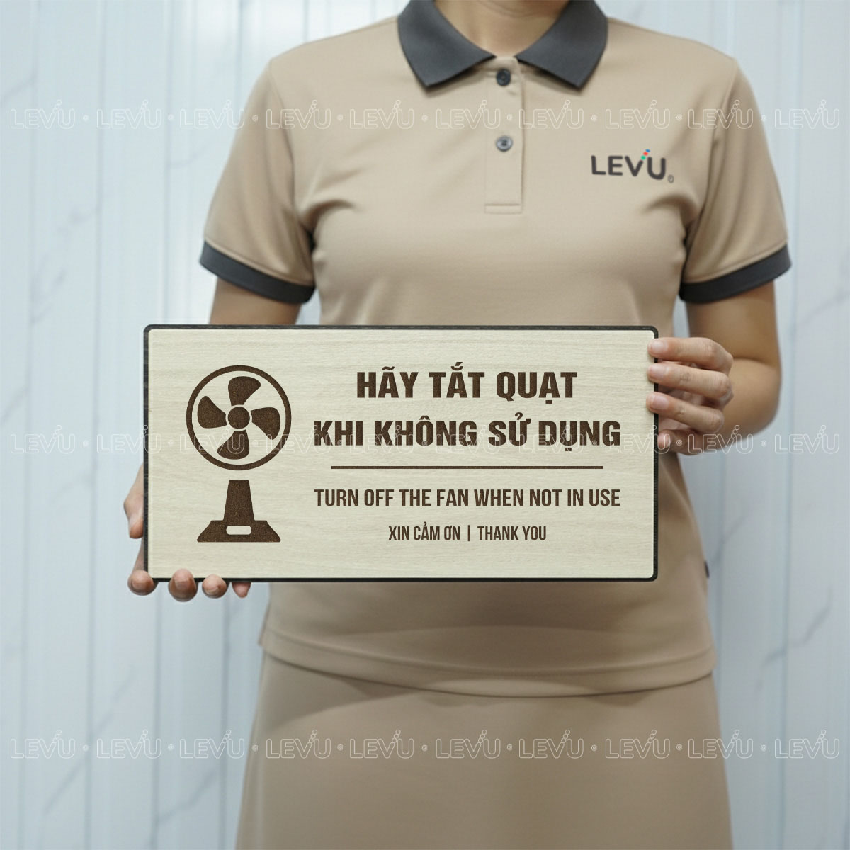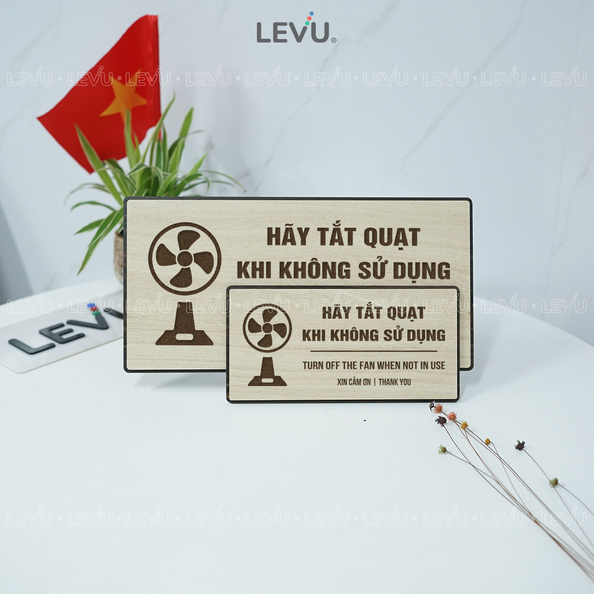 Bảng nhắc nhở hãy tắt quạt khi không sử dụng LEVU BG107 là giải pháp đơn giản nhưng hiệu quả để xây dựng thói quen tiết kiệm điện và nâng cao ý thức chung. Sản phẩm được sản xuất trực tiếp bởi LEVU Shop với hai tùy chọn chất liệu là gỗ MDF và nhôm Alu, phù hợp cho văn phòng, cửa hàng, trường học và nhà ở.
