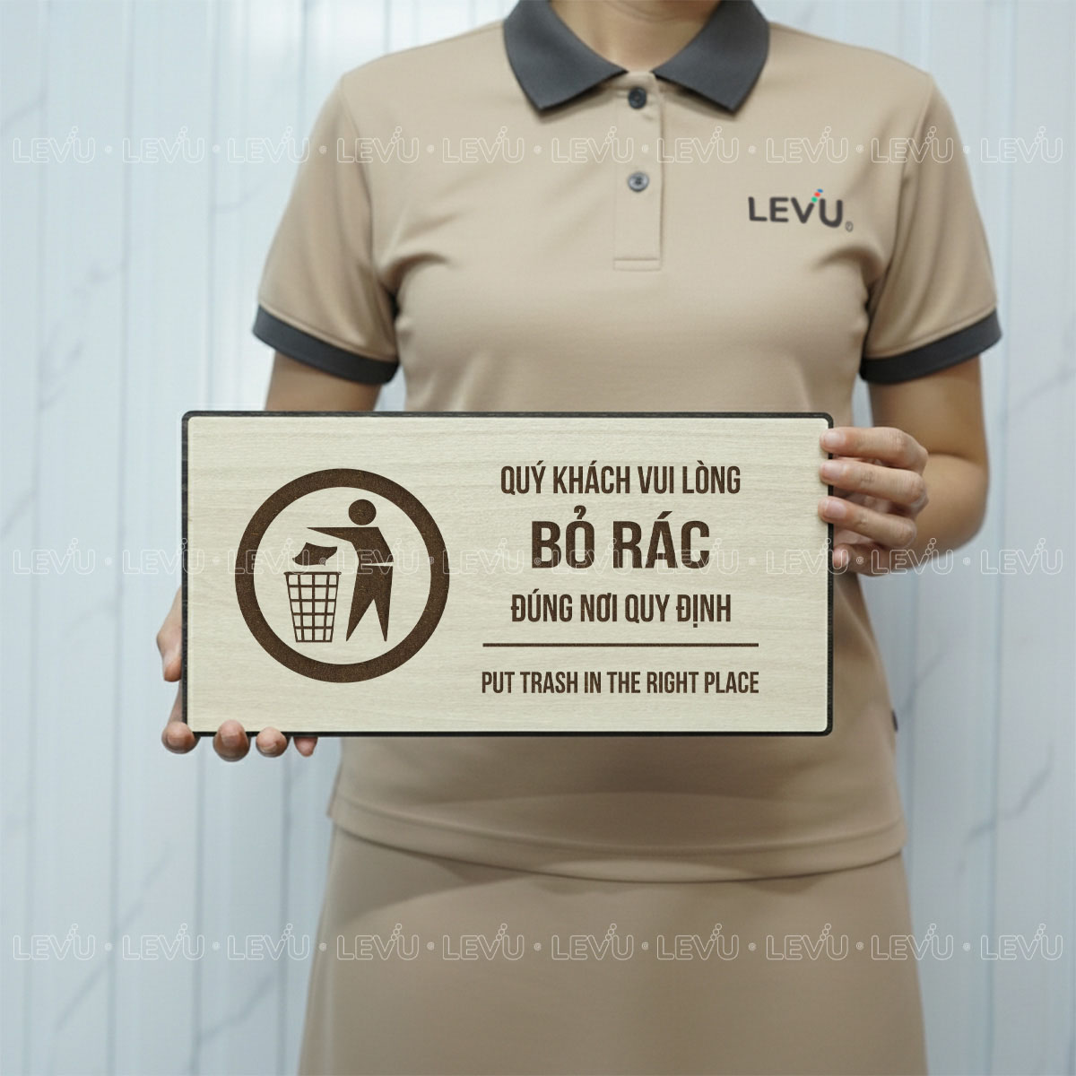 Giữ gìn không gian chung sạch sẽ, văn minh là một thách thức không nhỏ tại các văn phòng, quán cà phê hay khu vực công cộng. Một lời nhắc nhở nhẹ nhàng nhưng dứt khoát là điều cần thiết. Bảng nhắc nhở vui lòng bỏ rác đúng nơi quy định LEVU BG109 được thiết kế để giải quyết vấn đề này một cách tinh tế và hiệu quả, vừa truyền tải thông điệp rõ ràng, vừa góp phần tô điểm cho không gian thêm phần chuyên nghiệp.