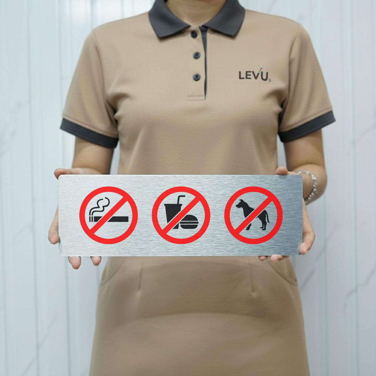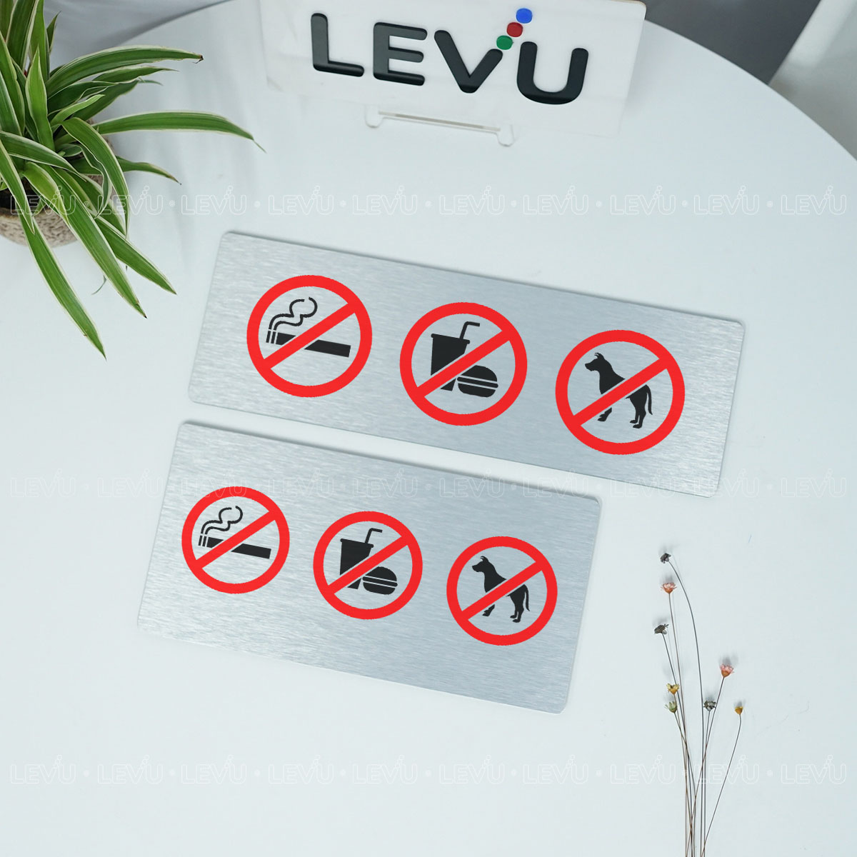 Biển Báo Cấm LEVU BG88: Cấm Thú Cưng, Đồ Ăn & Hút Thuốc - Lịch Sự và Tinh Tế
