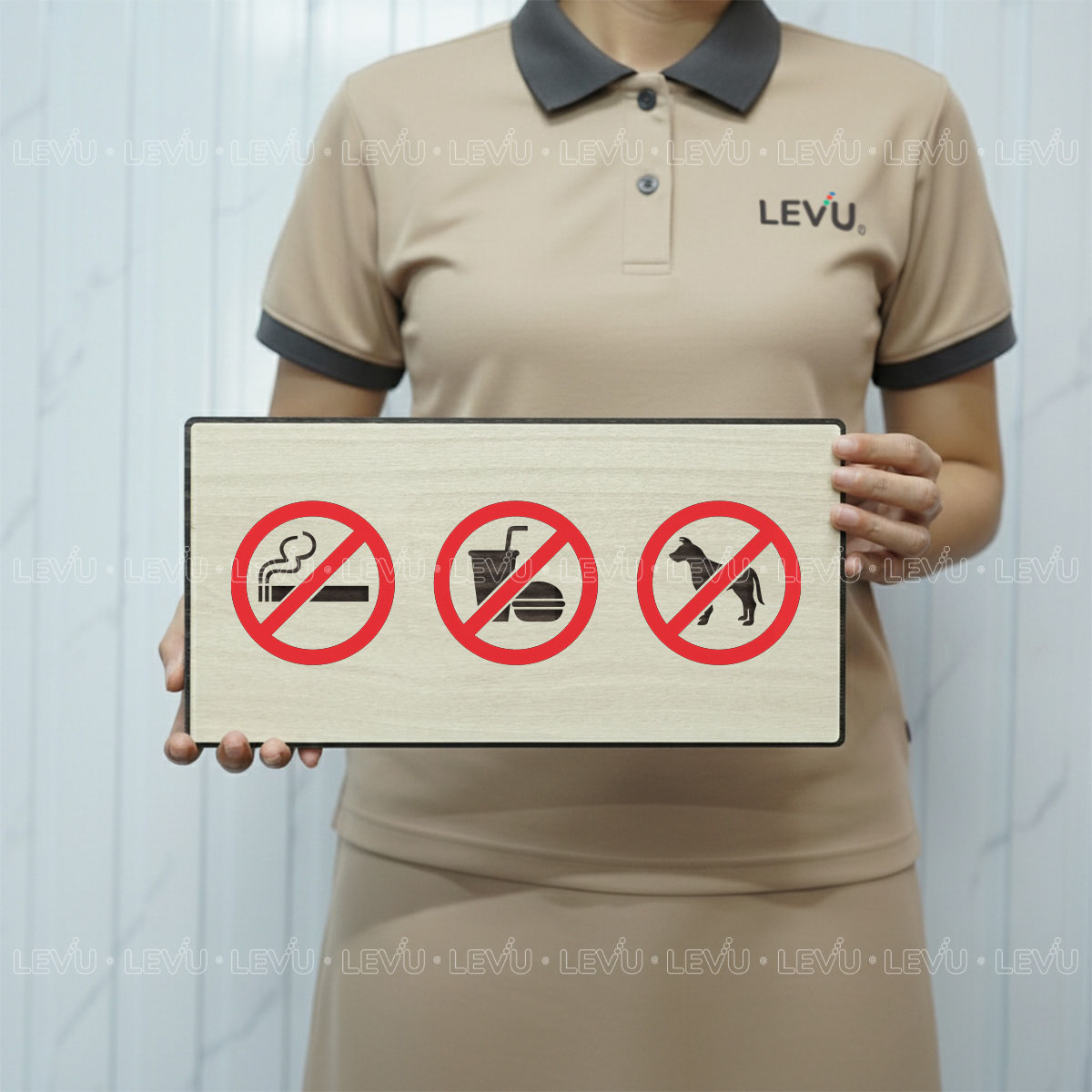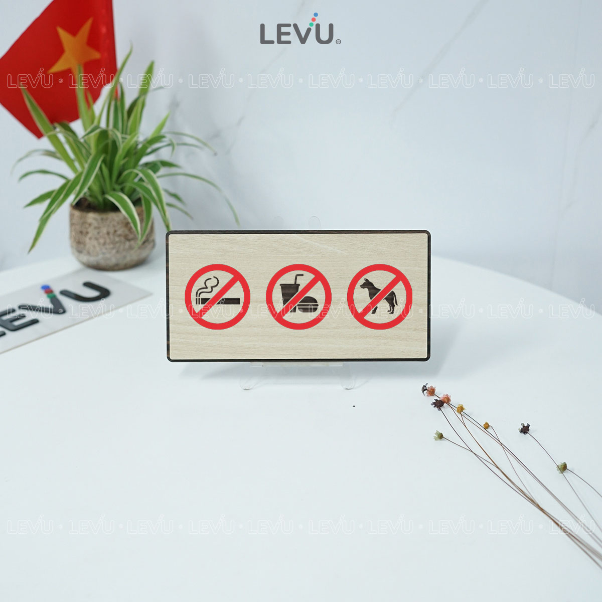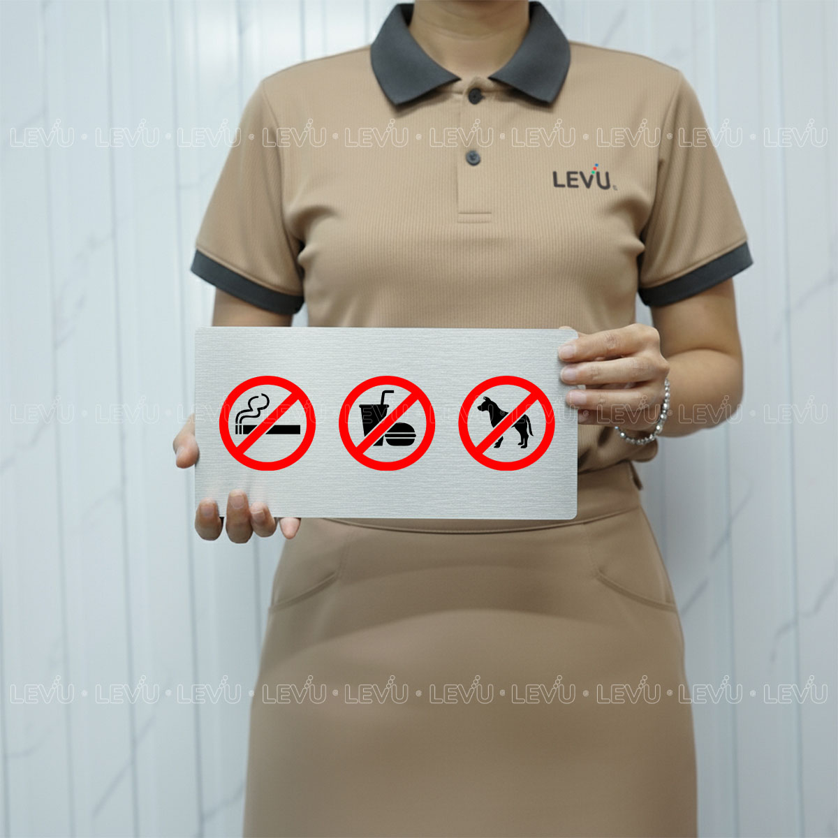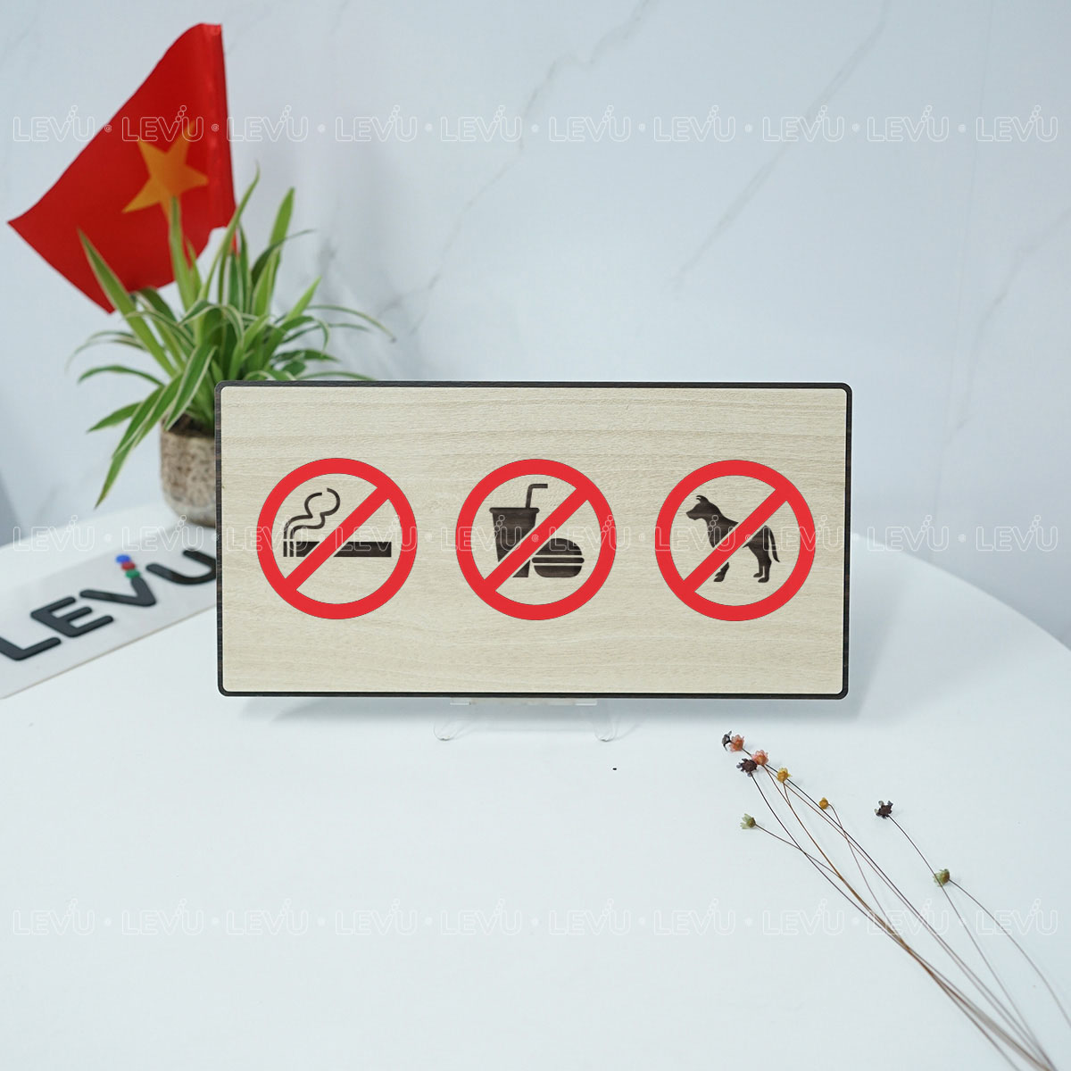 Biển Báo Cấm LEVU BG88: Cấm Thú Cưng, Đồ Ăn & Hút Thuốc – Lịch Sự và Tinh Tế