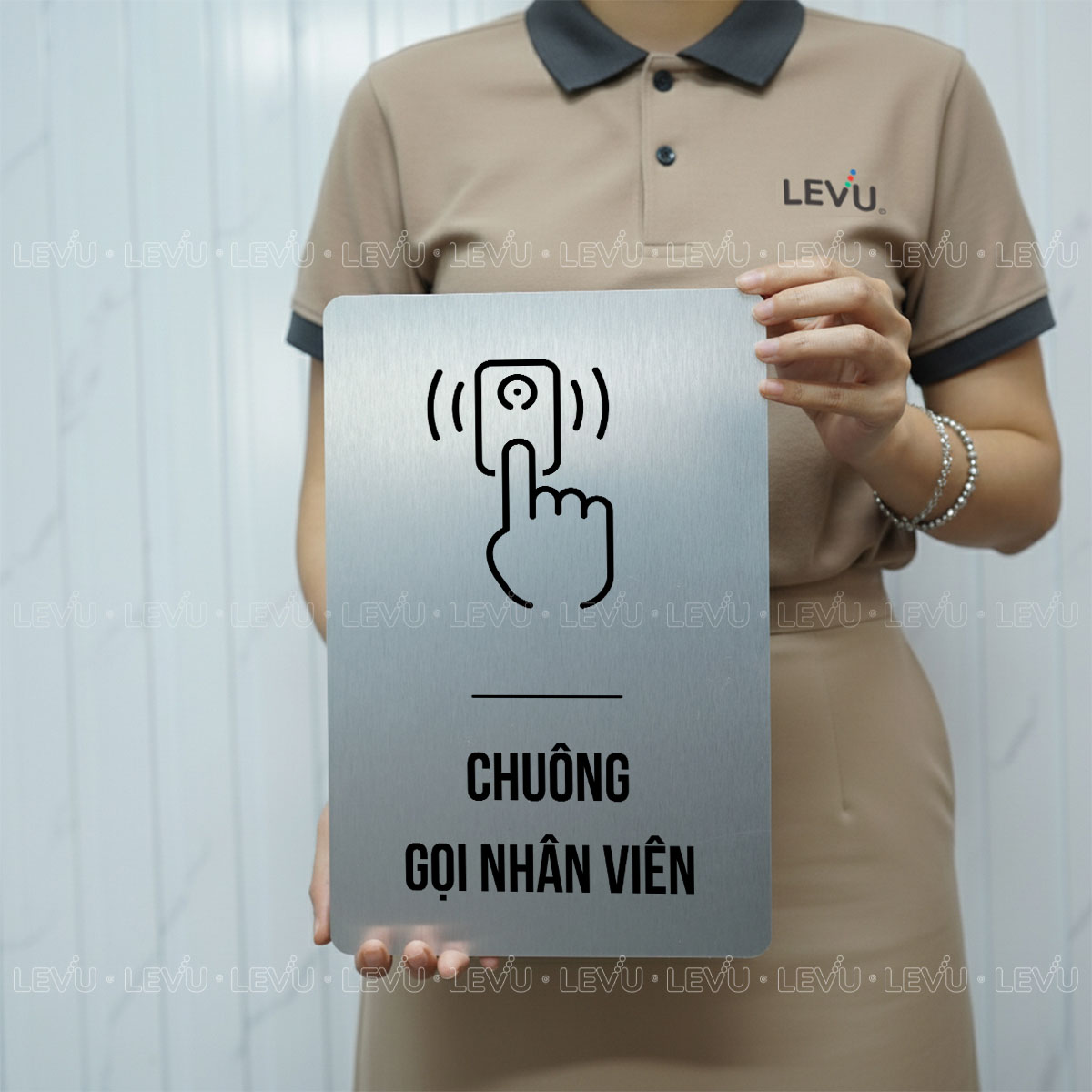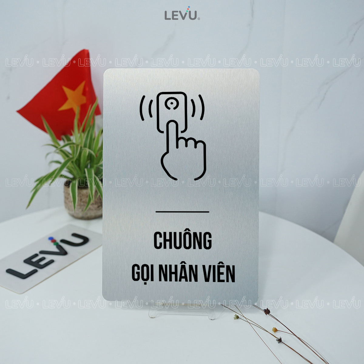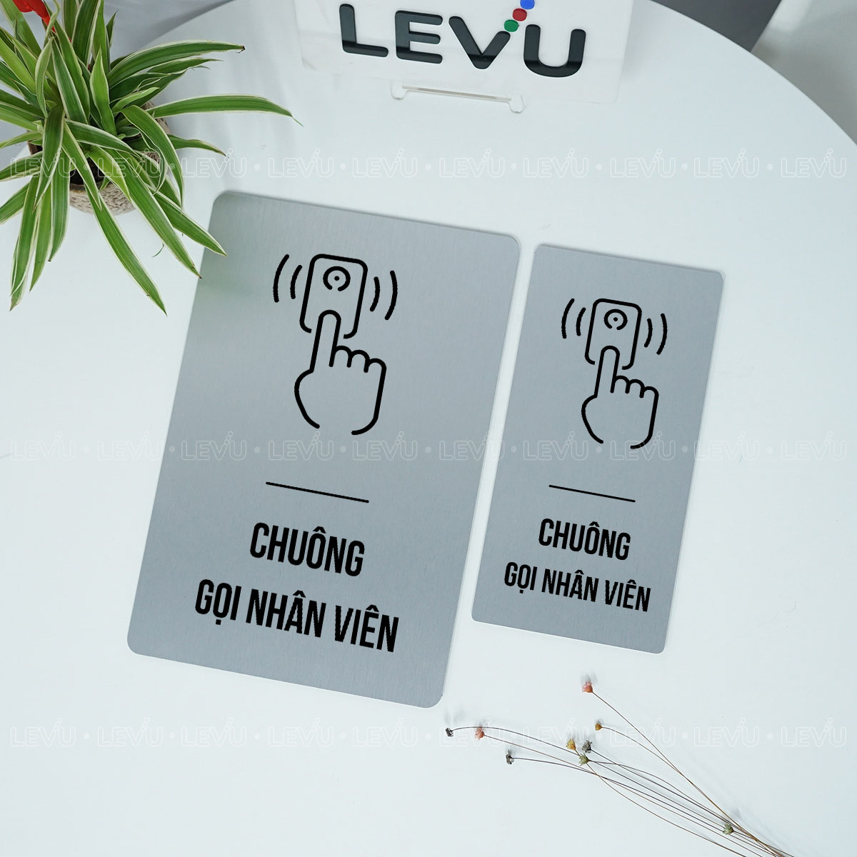 Biển dán tường chỉ dẫn nhấn chuông gọi nhân viên LEVU BG81 chất liệu nhôm alu in uv size nhỏ 12x24cm
