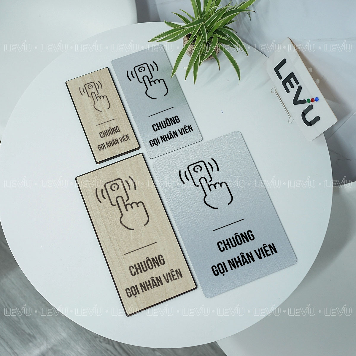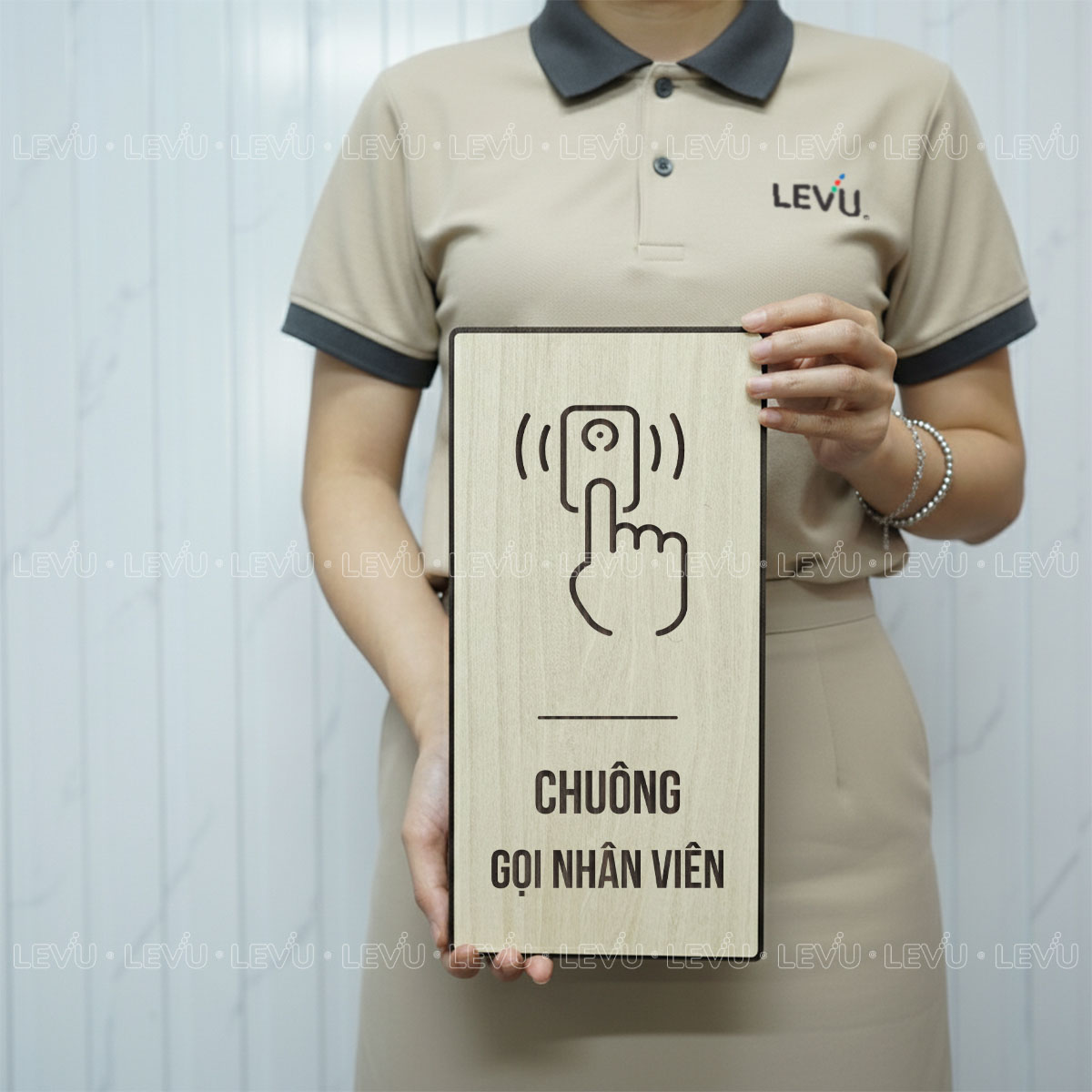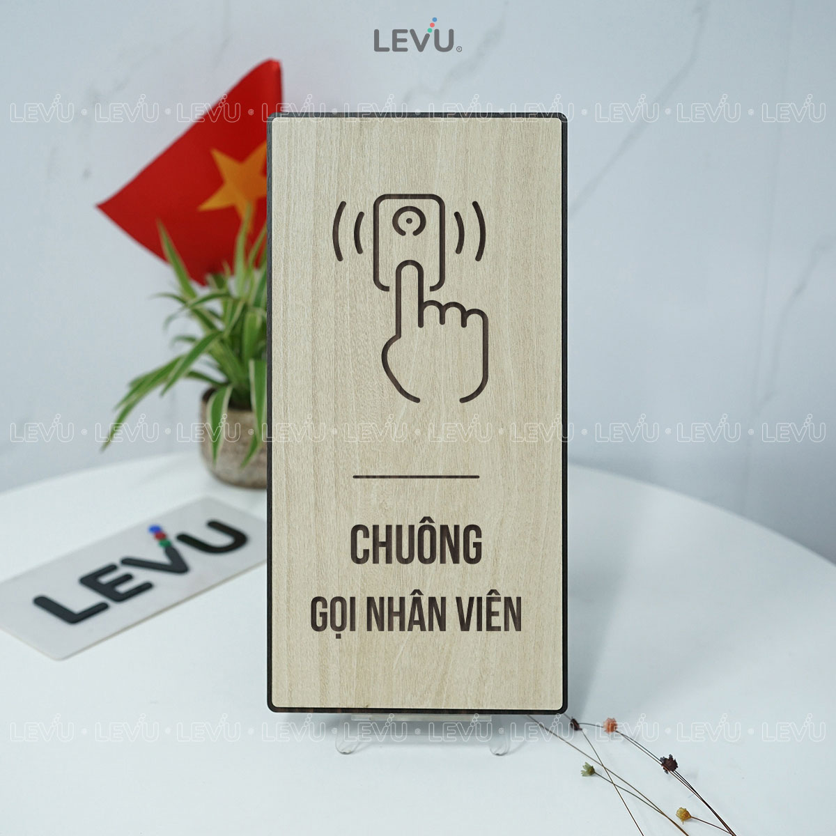 Biển dán tường chỉ dẫn nhấn chuông gọi nhân viên LEVU BG81 chất liệu gỗ mdf khắc laser size lớn 15x30cm