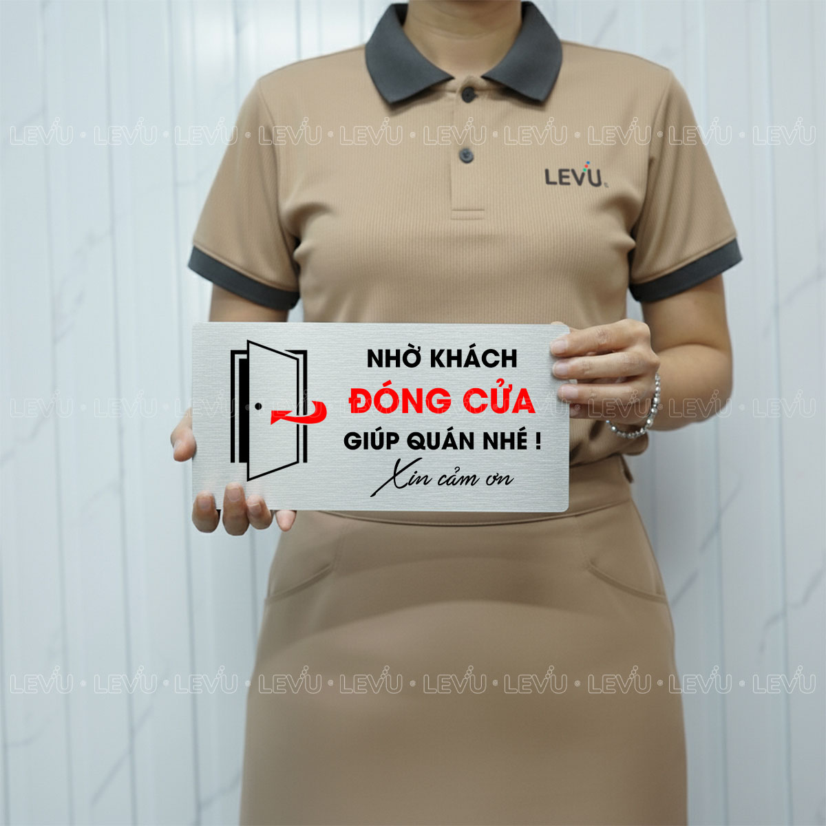 Biển Nhắc Nhở Nhờ Khách Đóng Cửa Giúp Quán Nhé LEVU BG93