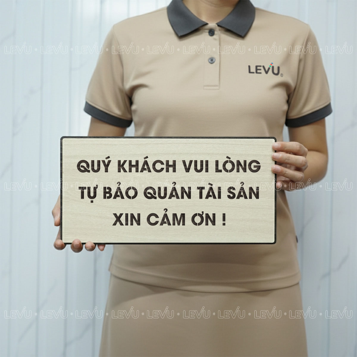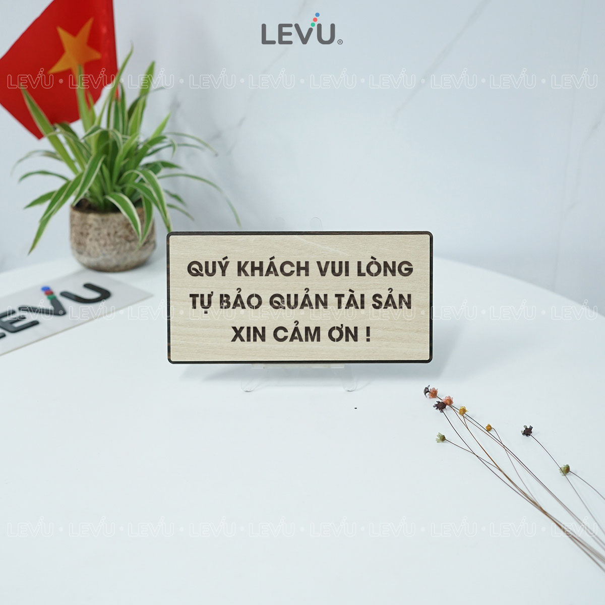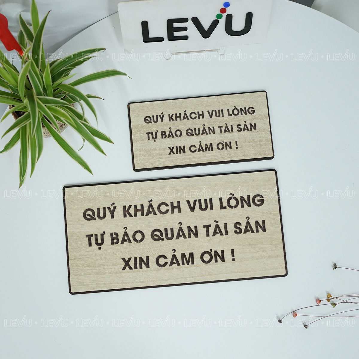 Biển nhắc nhở chú ý vui lòng tự bảo quản tài sản cá nhân LEVU BG96 chất liệu gỗ khắc laser
