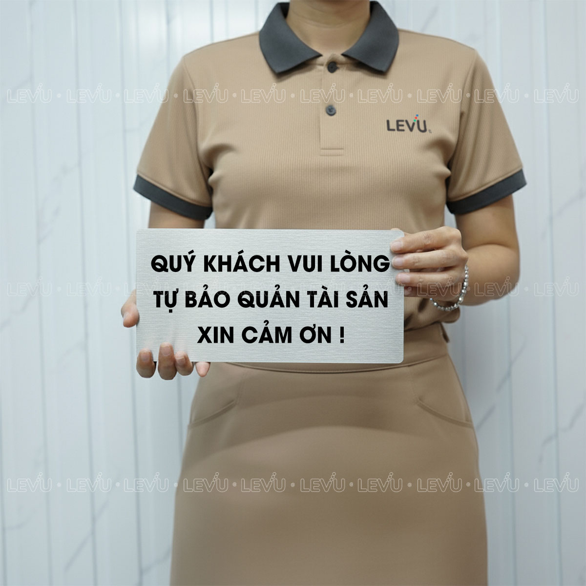 • Nội dung: “Quý khách vui lòng tự bảo quản tài sản. Xin cảm ơn!” được in hoặc khắc laser sắc nét, dễ đọc.