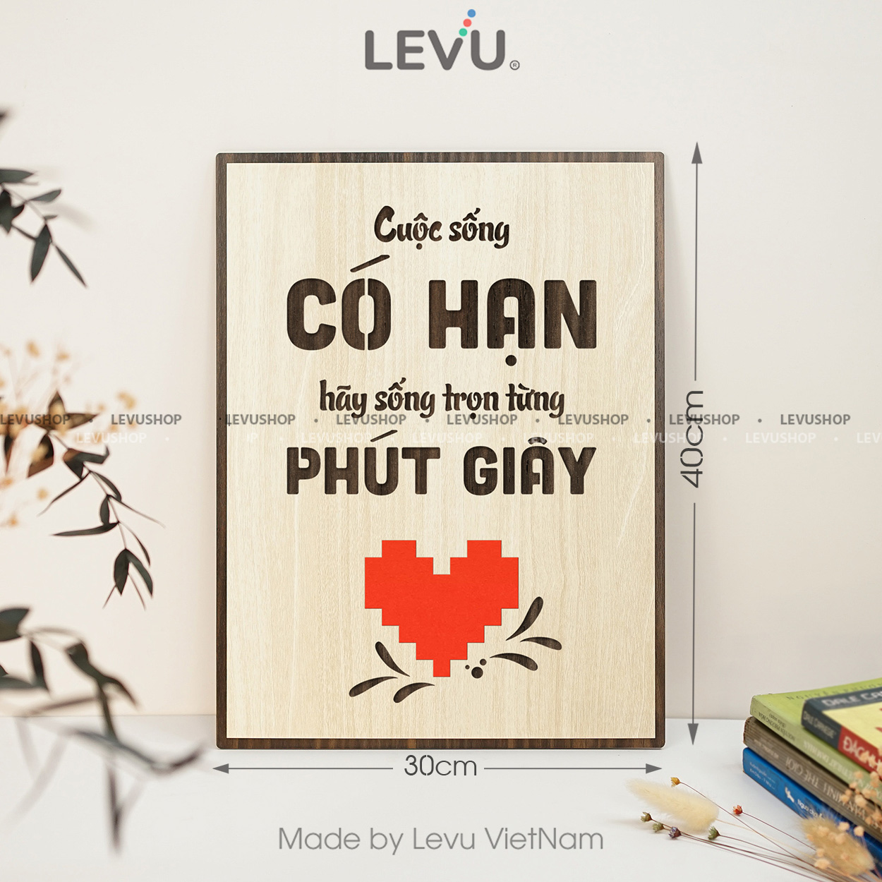 Tranh treo tường gỗ LEVU036 “Cuộc sống có hạn hãy sống trọn từng phút giây” mang đến cho bạn một thông điệp hết sức ý nghĩa trong cuộc sống qua khung tranh gỗ được thiết kế sáng tạo, độc đáo và tạo ra phong cách riêng của bạn. Sản phẩm không chỉ còn là một vật trang trí mà nó sẽ giúp tạo ra niềm cảm hứng tích cực mỗi ngày để bạn hoàn thành các công việc một cách hiệu quả hơn.