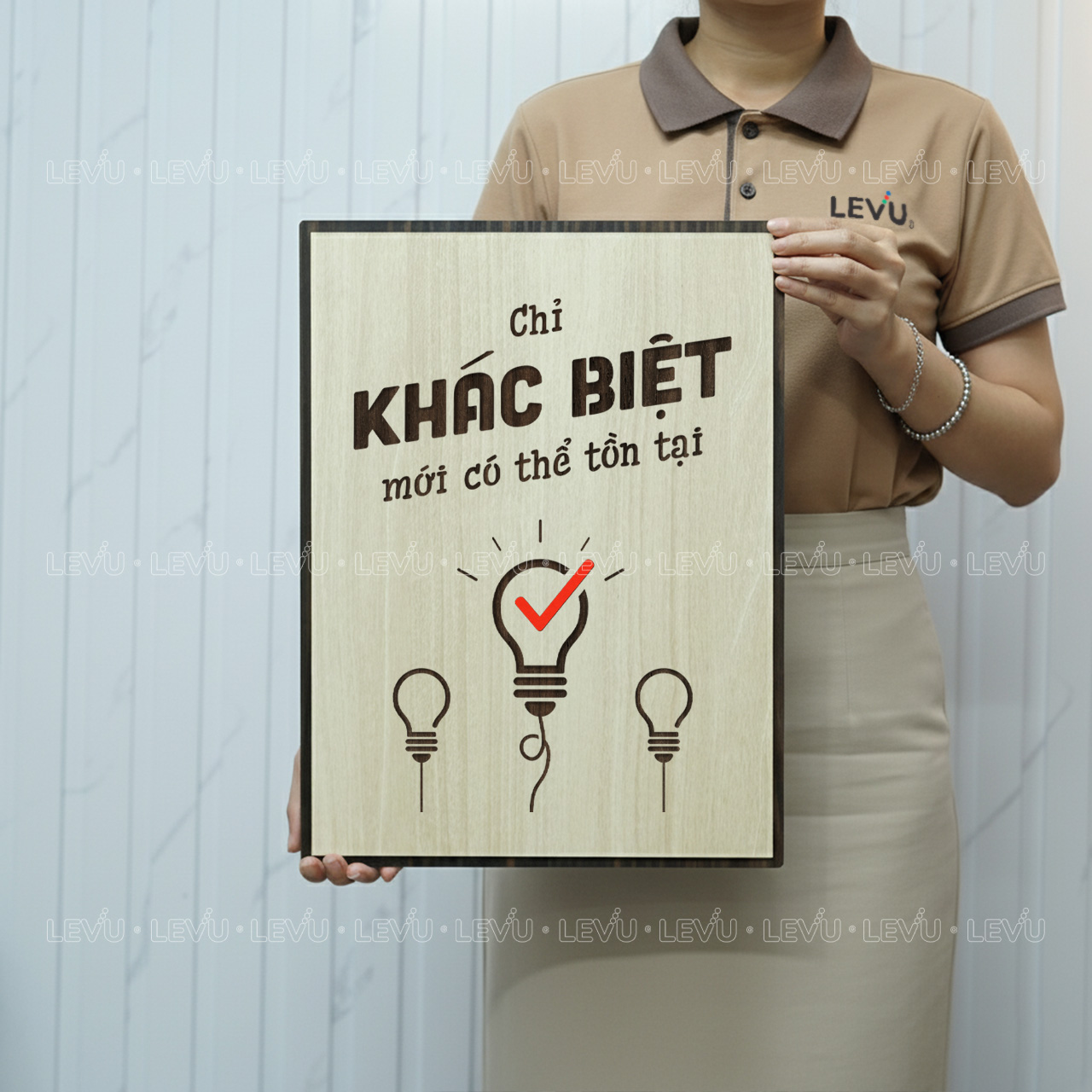 👉 Tranh văn phòng gỗ khắc chữ slogan tạo động lực treo tường LEVU được thiết kế từ những câu slogan hay ý nghĩa về cuộc sống giúp truyền cảm hứng sáng tạo trong công việc phù hợp để sử dụng cho nhiều không gian khác nhau như: nhà ở, văn phòng, tranh quán cafe, nhà hàng, khách sạn, trường học, bệnh viện, homestay, các khu vực công viên công cộng, hồ bơi, làm quà tặng doanh nghiệp, trang trí nhà mới, quà tặng sinh nhật, tân gia, tặng khách hàng dịp lễ tết cuối năm, phòng làm việc và phòng học tập.