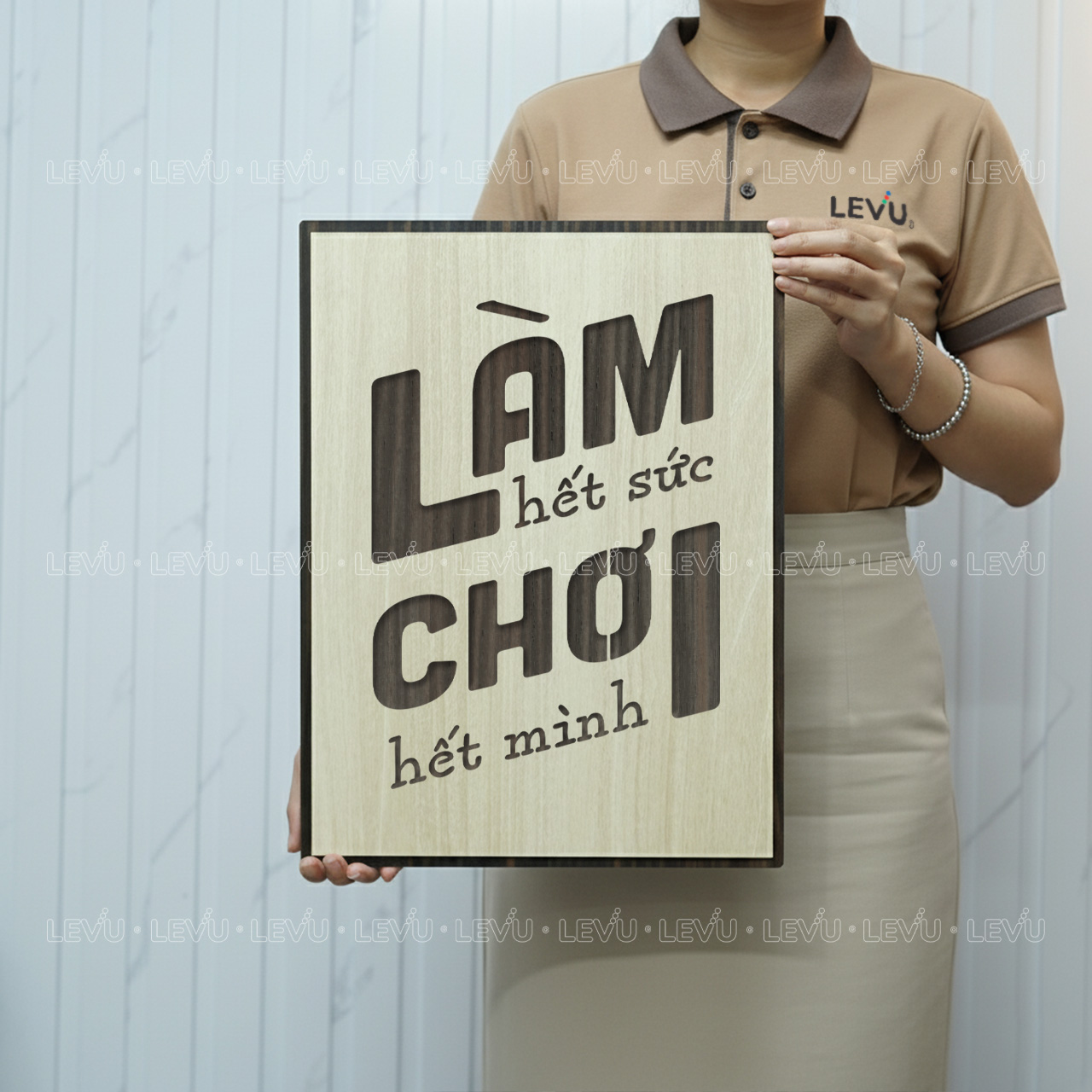 👉 Tranh văn phòng gỗ khắc chữ slogan tạo động lực treo tường LEVU được thiết kế từ những câu slogan hay ý nghĩa về cuộc sống giúp truyền cảm hứng sáng tạo trong công việc phù hợp để sử dụng cho nhiều không gian khác nhau như: nhà ở, văn phòng, tranh quán cafe, nhà hàng, khách sạn, trường học, bệnh viện, homestay, các khu vực công viên công cộng, hồ bơi, làm quà tặng doanh nghiệp, trang trí nhà mới, quà tặng sinh nhật, tân gia, tặng khách hàng dịp lễ tết cuối năm, phòng làm việc và phòng học tập.